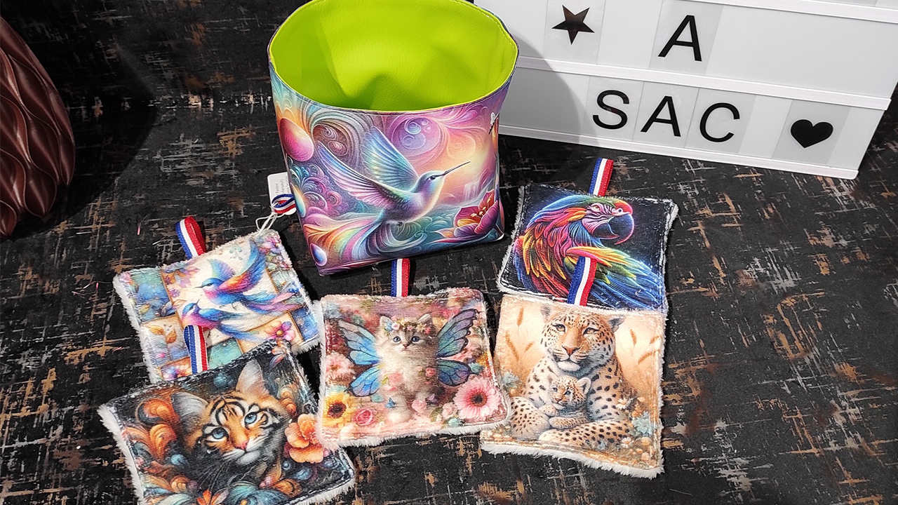 Ces pochettes sont cousues en coton imprimé (modèle unique),