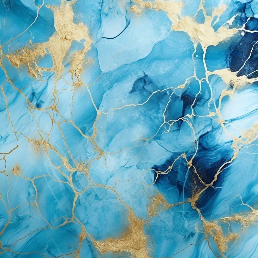 Craquez pour ce magnifique coupon "marbrures bleues et dorées".