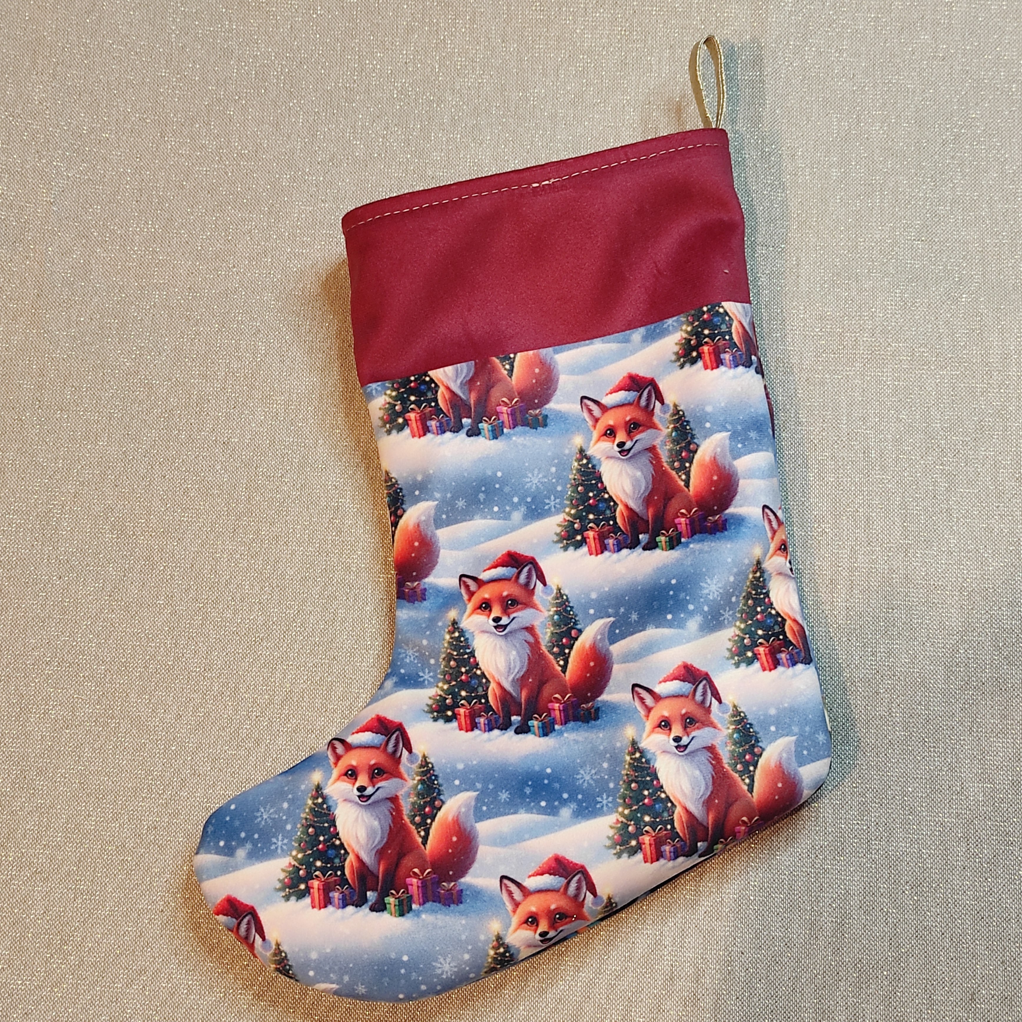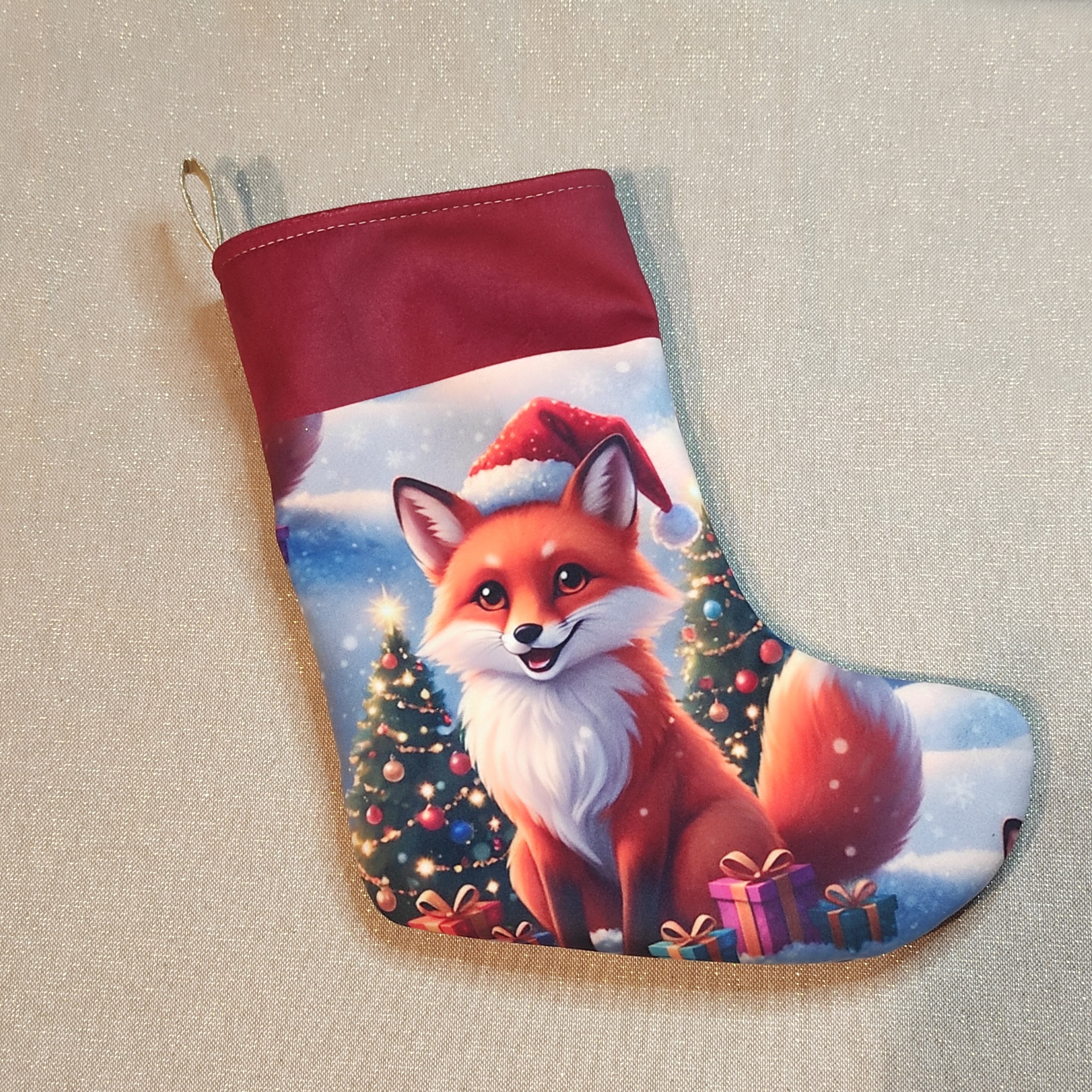 Pour un Noël unique, je vous propose cette adorable chaussette de Noël en velours avec une jolie illustration d'un Renard trop mignon.