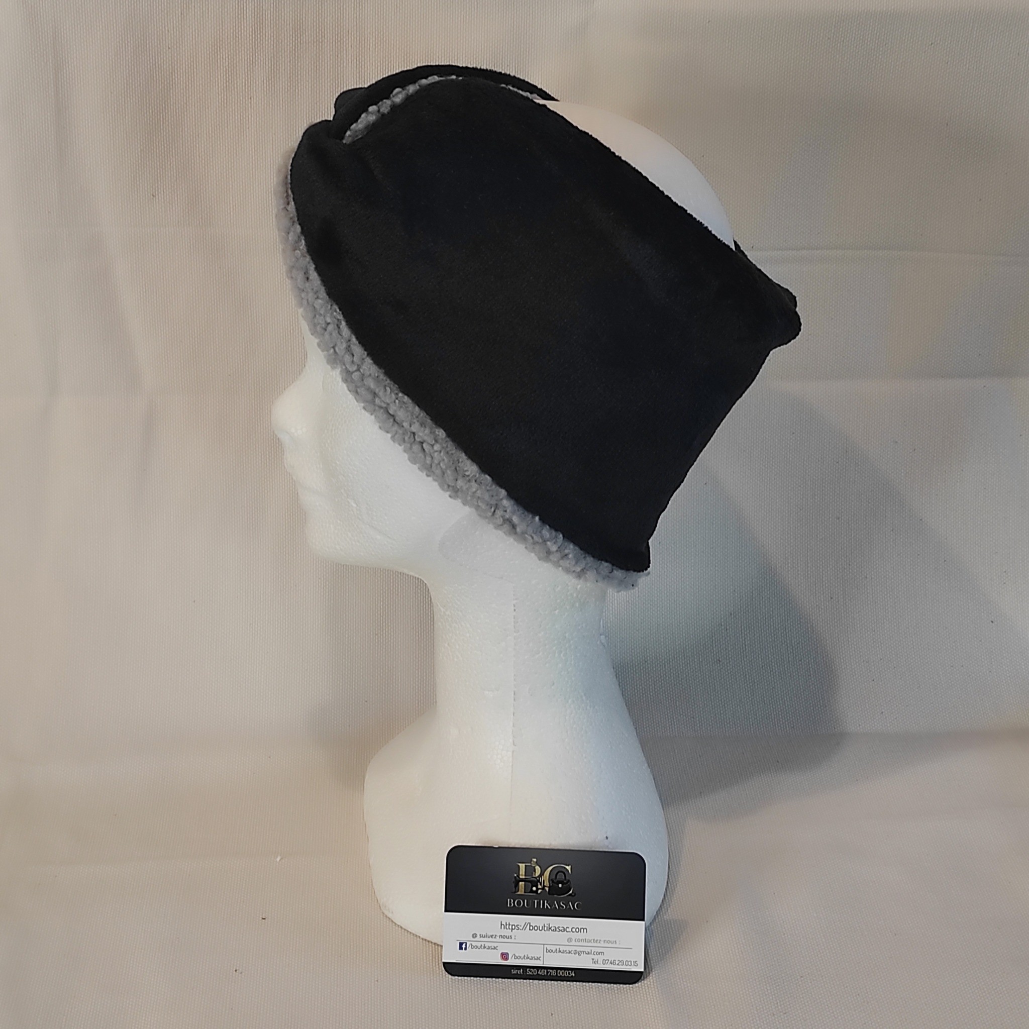 Cet agréable bandeau en doudou noir et teddy gris (à l'intérieur) qui sert de chauffe-oreilles pour les journées glaciales de l'hiver.