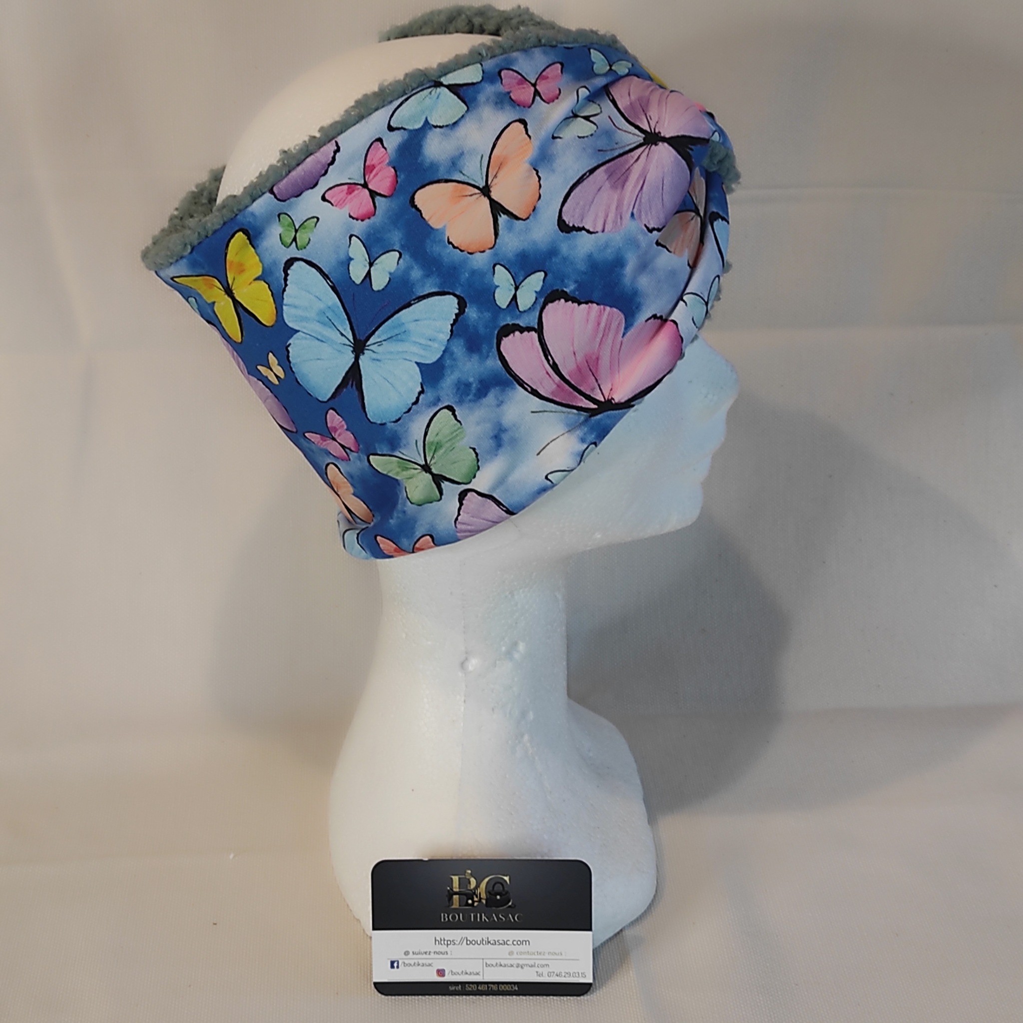 Cet agréable bandeau en sweat Papillon et teddy bleu (à l'intérieur) qui sert de chauffe-oreilles pour les journées glaciales de l'hiver.
