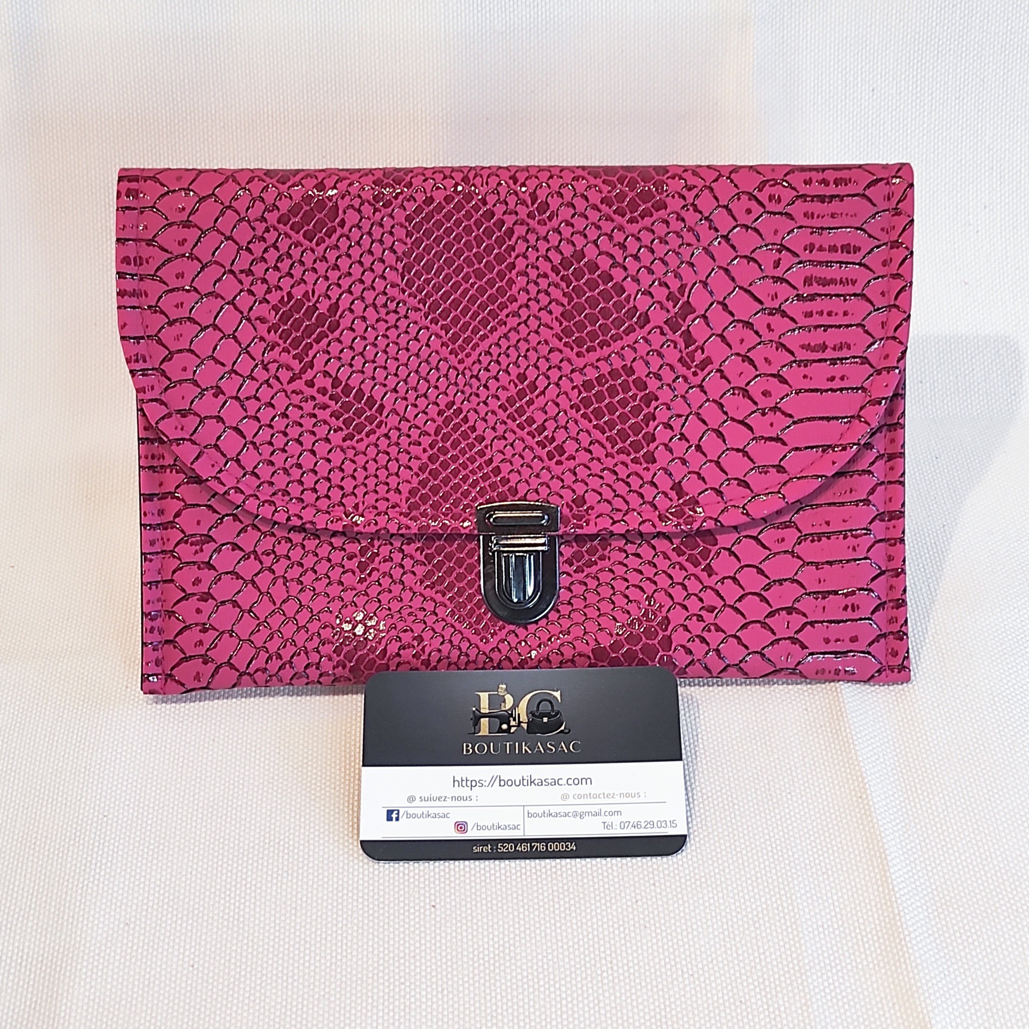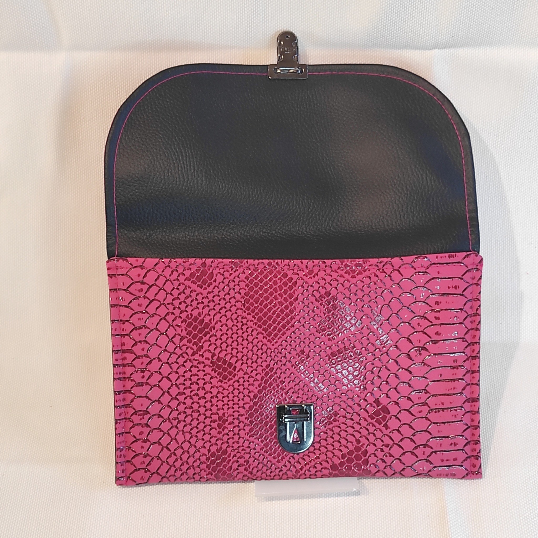 Pochette fourre-tout en simili Comodo fuchsia et intérieur simili noir.
