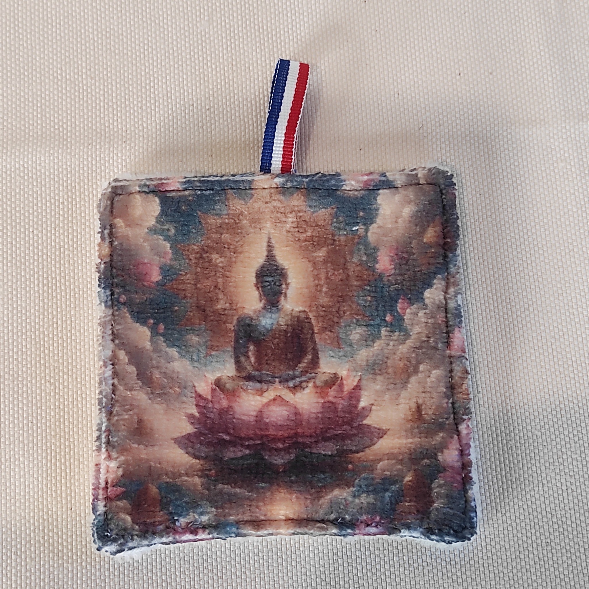 Leur face imprimée, en micro éponge de bambou douce et absorbante, arbore de somptueux Bouddhas.