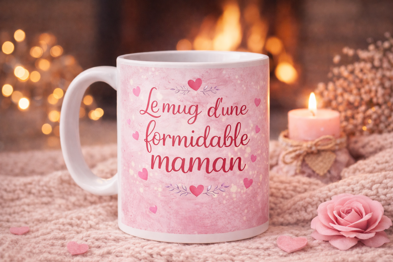 Inspiré d’une ambiance cocooning près de la cheminée, ce mug évoque les instants précieux : un café chaud, un plaid tout doux et un moment rien qu’à elle.