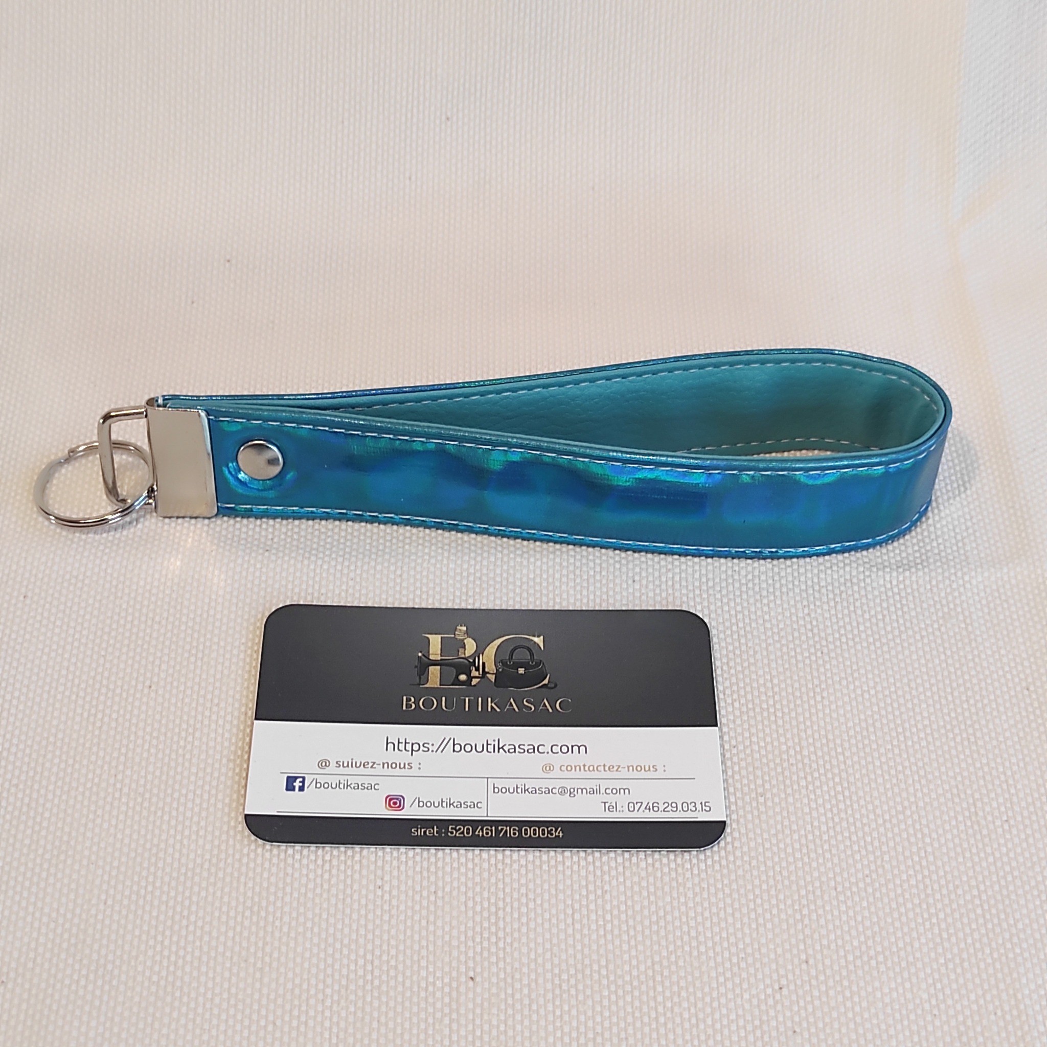 Faites briller votre quotidien avec ce porte-clés poignet femme en simili cuir bleu holographique, aux magnifiques reflets irisés inspirés des nuances de l’océan.