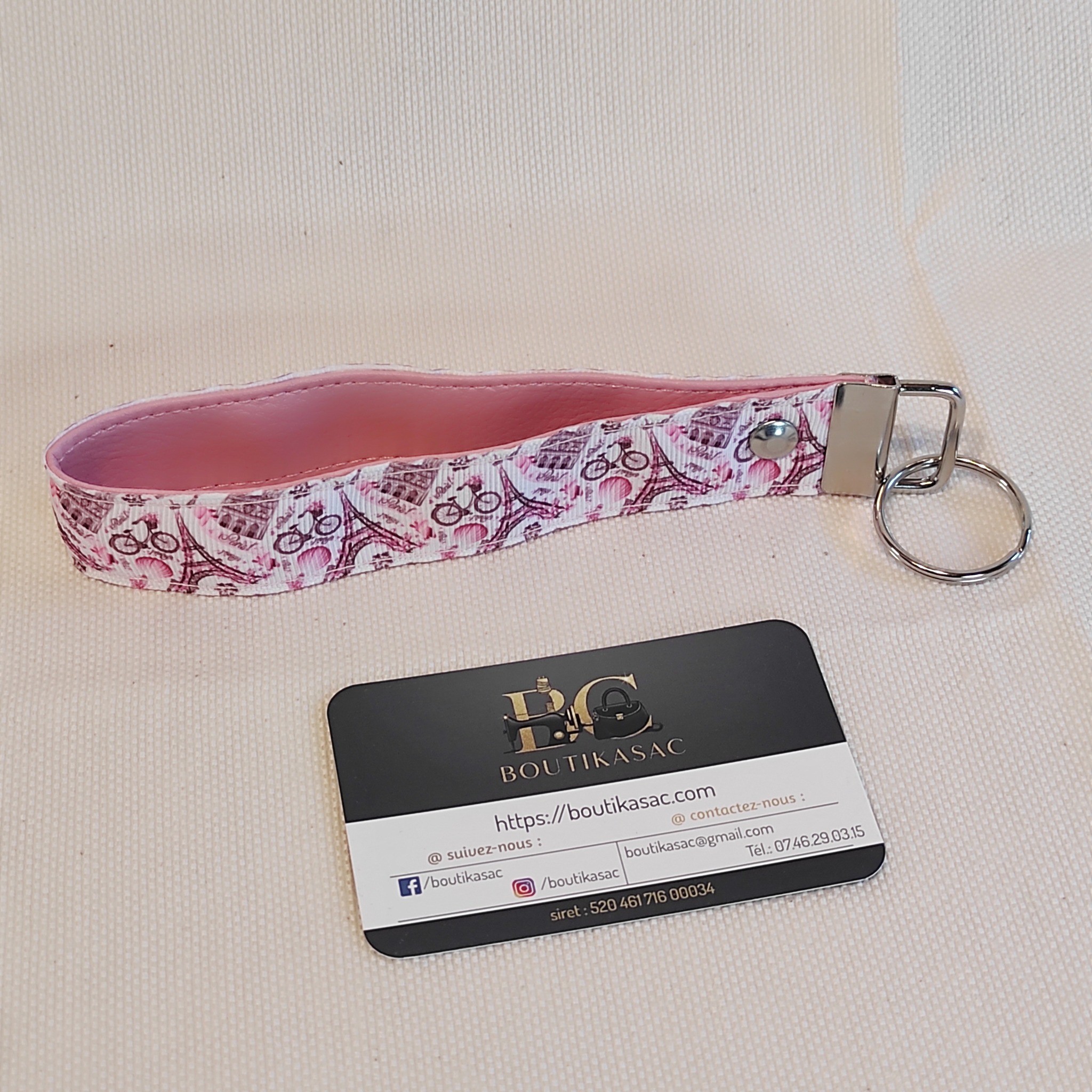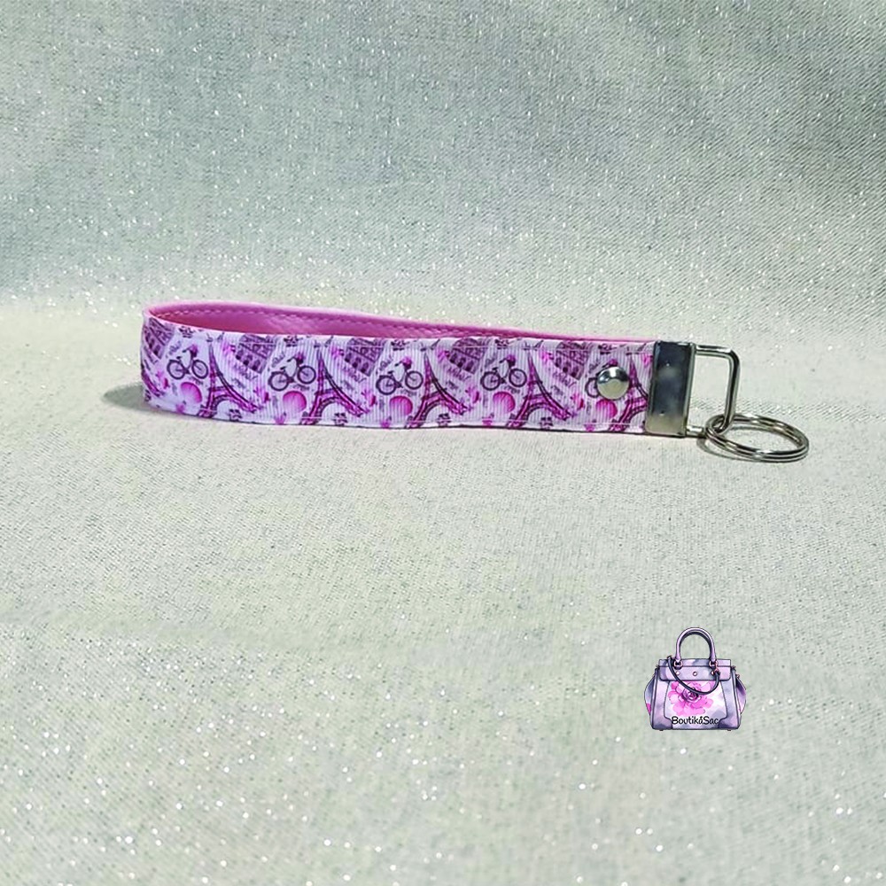Porte-clés poignet femme motif Paris – Polyester imprimé et simili rose