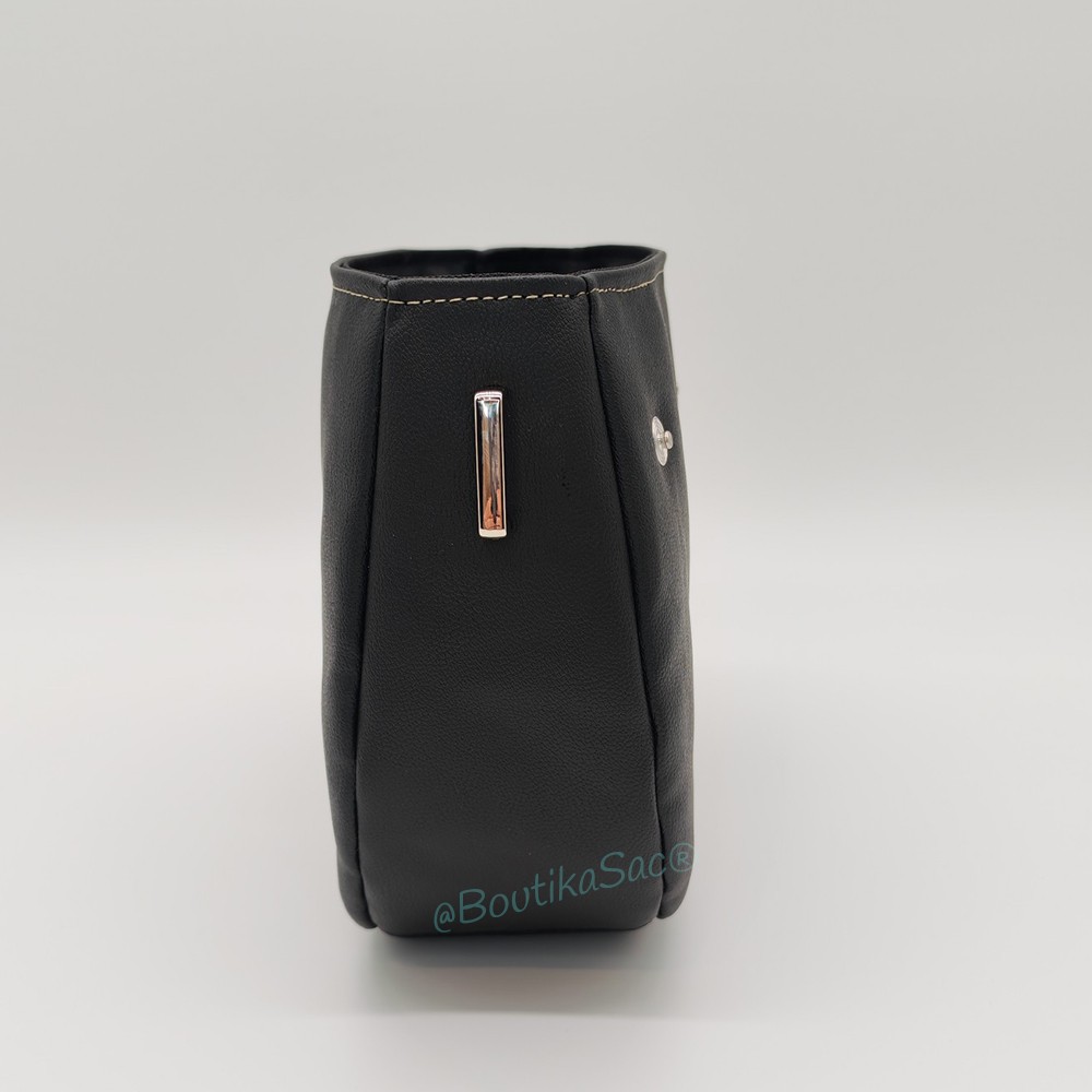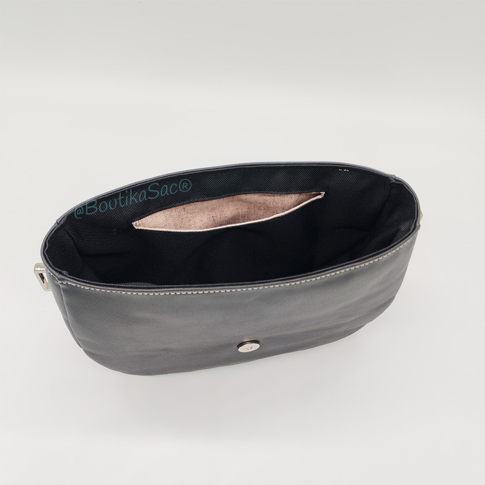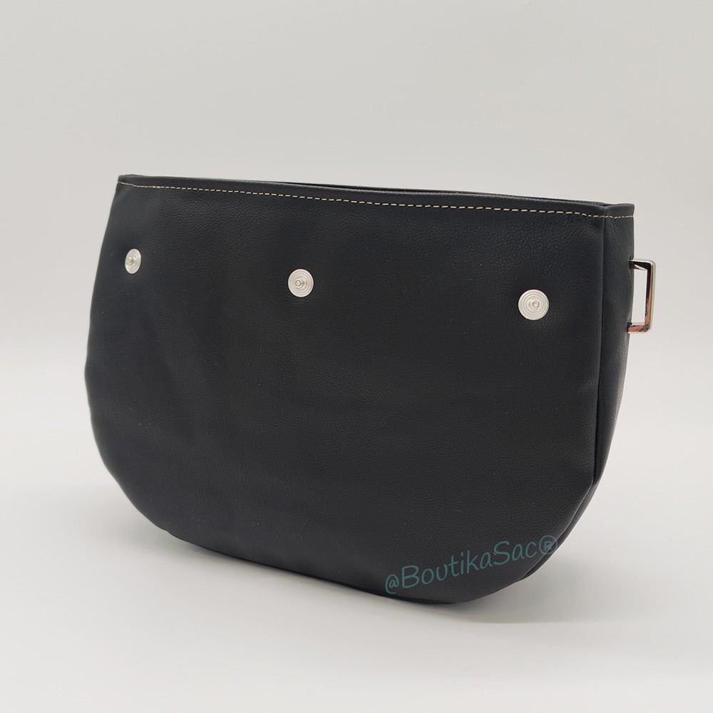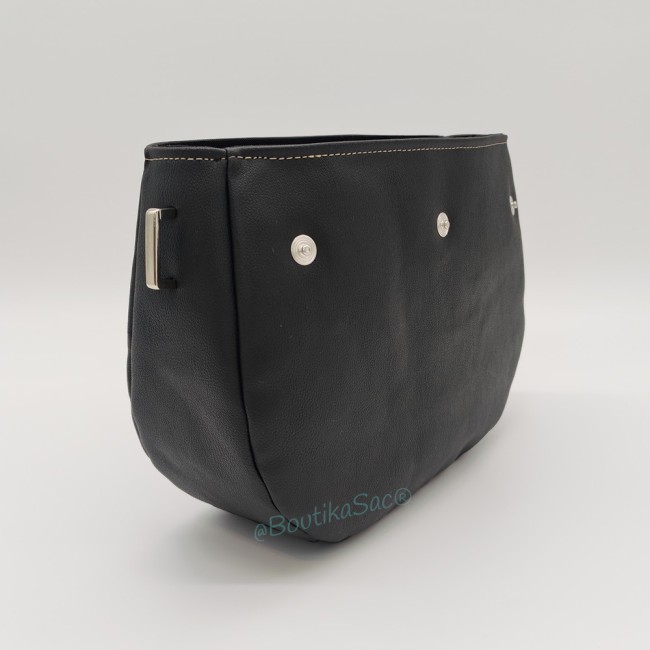 Confectionnée à la main dans mon atelier BoutikaSac, cette base est réalisée en simili cuir noir au grain élégant, une matière résistante et facile d’entretien. L’extérieur du sac est renforcé avec une mousse résille, qui apporte une belle tenue et un toucher agréable tout en conservant la souplesse du sac.