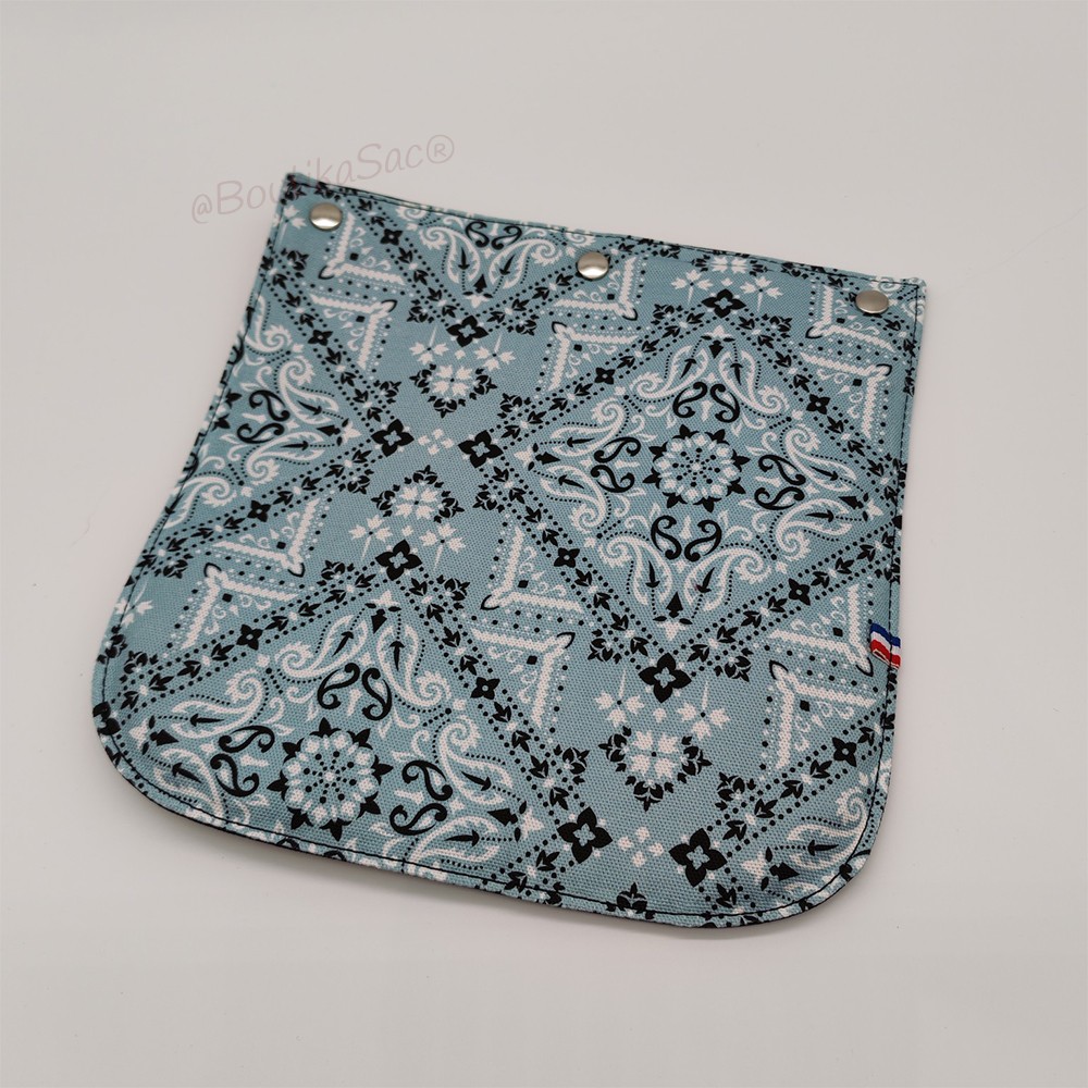 Apportez une touche de caractère à votre sac avec le rabat Switch Alma bandana bleu clair, un rabat interchangeable conçu pour transformer instantanément le style de votre sac modulable BoutikaSac.