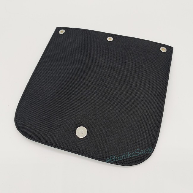 Le verso du rabat est réalisé en toile à sac noire résistante, une matière durable qui protège le sac et garantit une bonne solidité dans le temps.