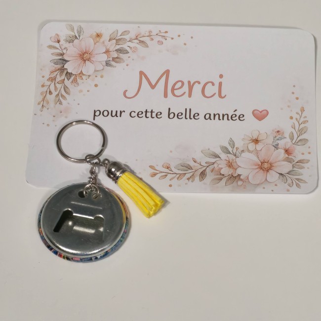 Badge décapsuleur “Merci Maîtresse” – Cadeau fin d’année original et utile