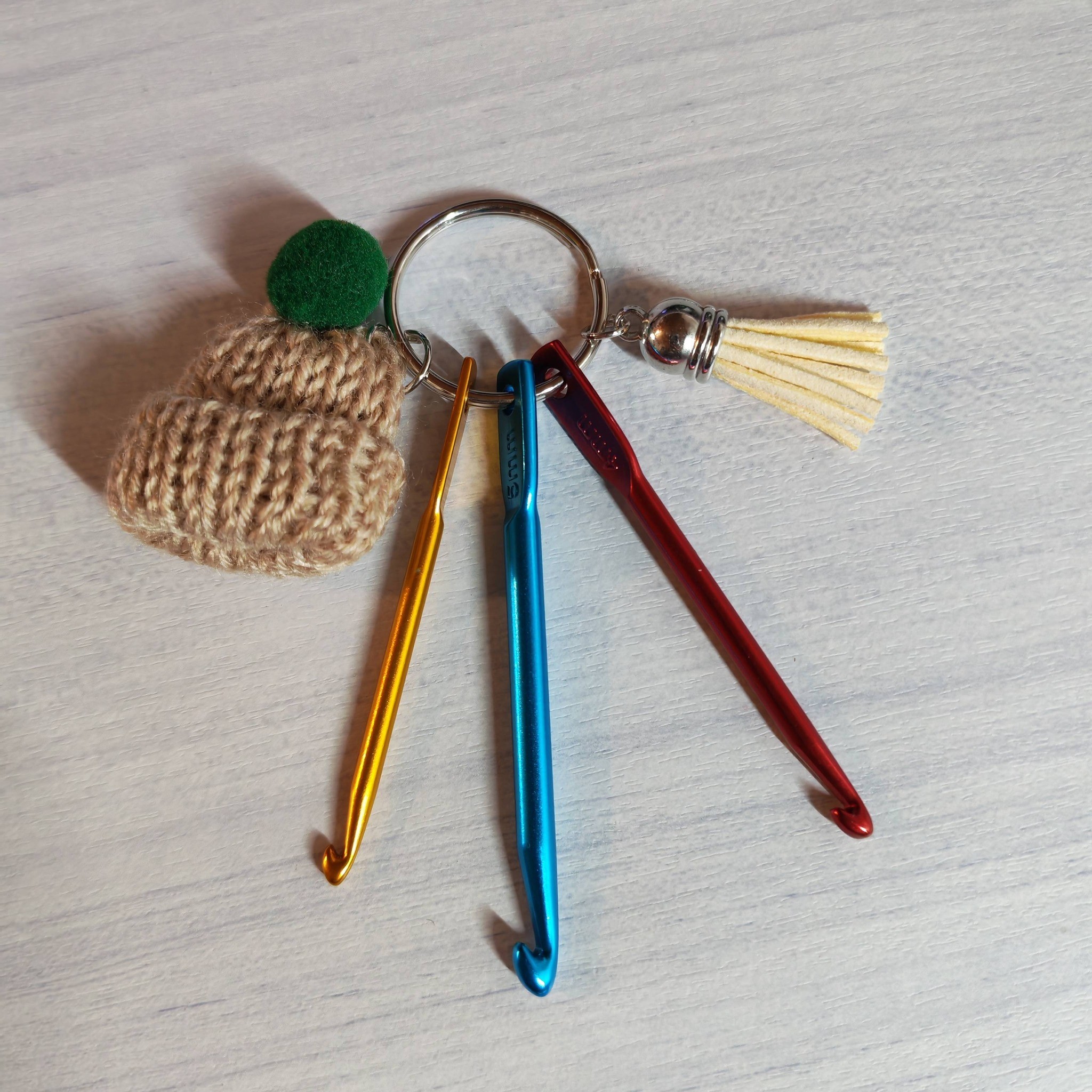 Porte-clés crochet avec mini bonnet beige – Accessoire crochet original