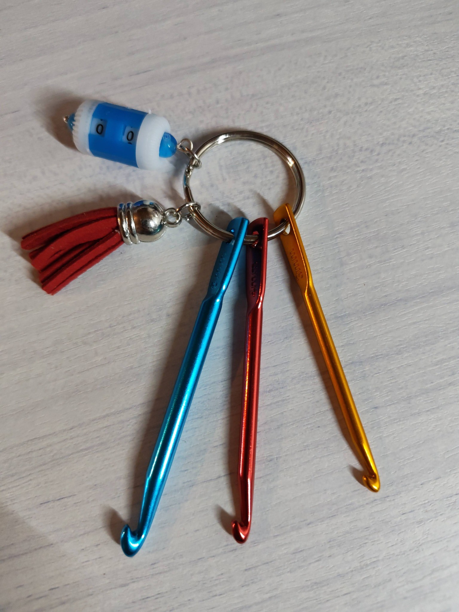 Porte-clés crochet avec compteur de rangs – Accessoire crochet pratique