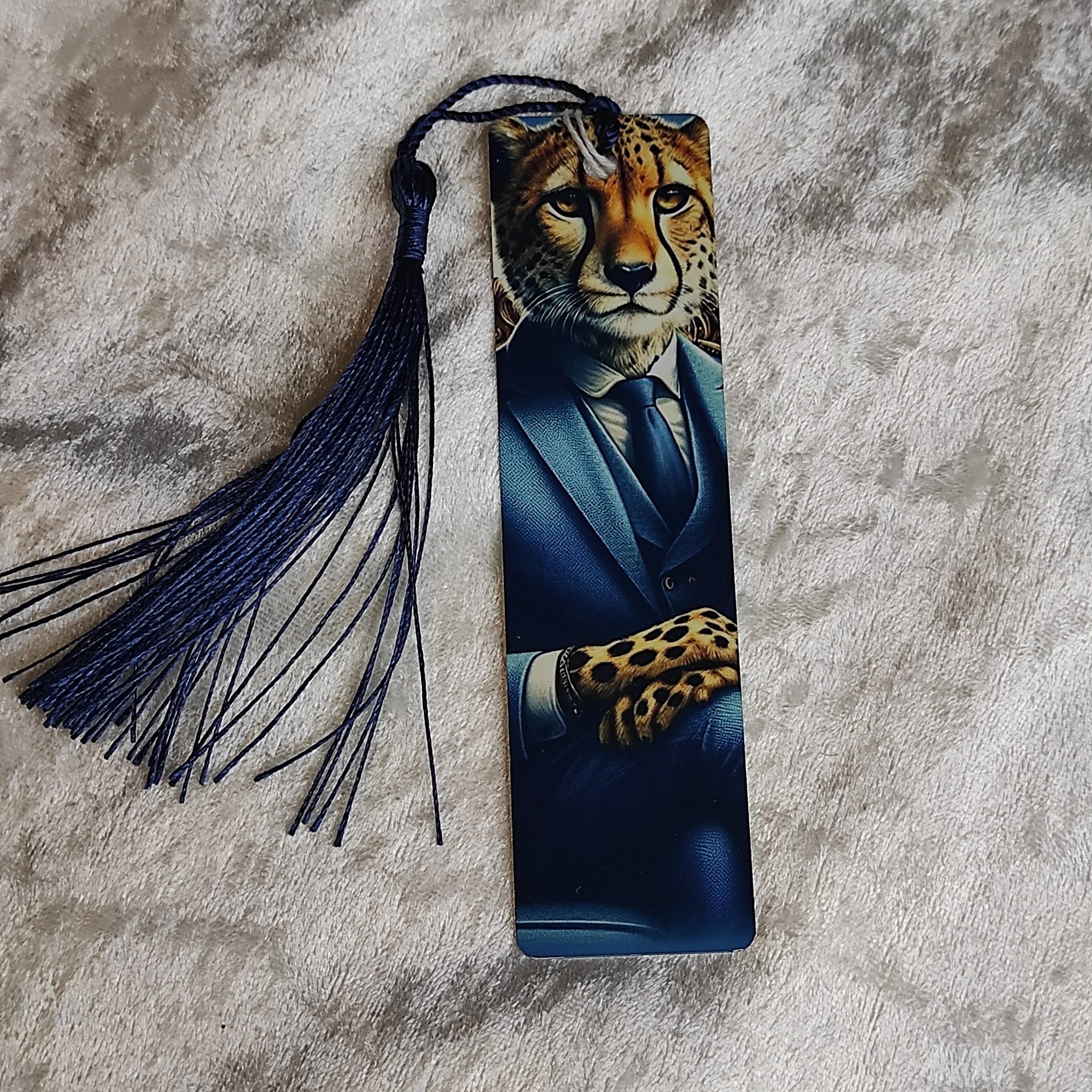 âš Apportez une touche d’élégance moderne à vos lectures avec ce marque-page en aluminium sublimé guépard en costume.