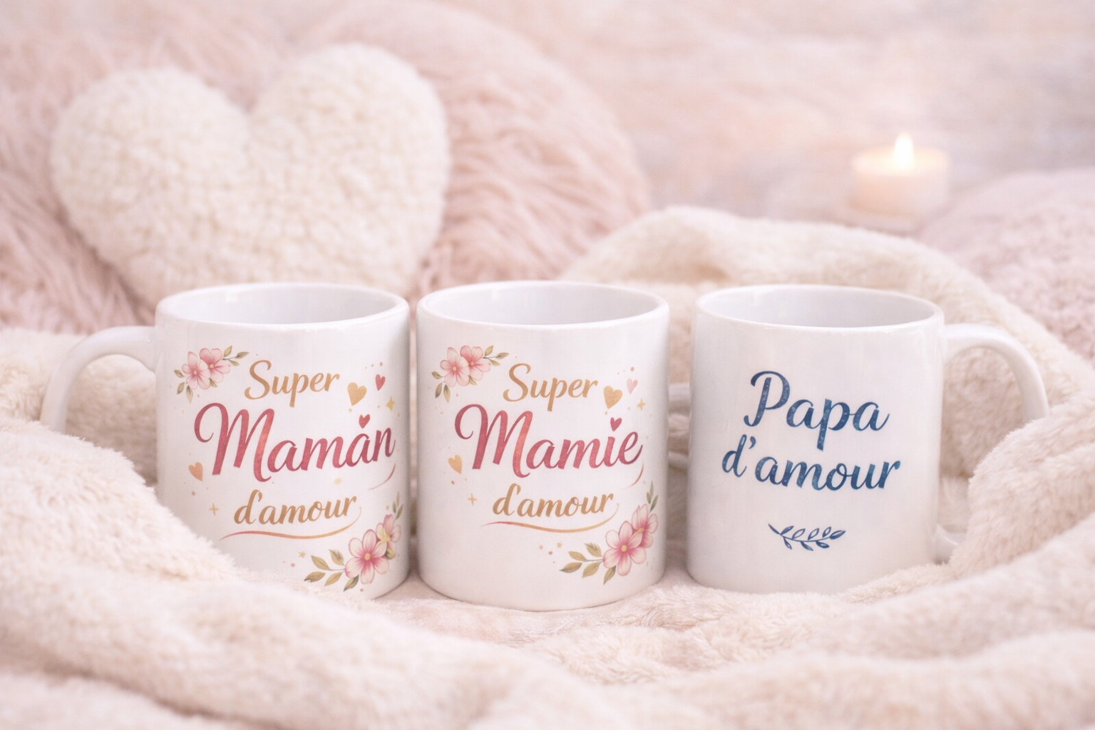Pour Mamie, Maman, Papa, maîtresse ou marraine, chaque tasse devient un cadeau tendre et utile au quotidien.